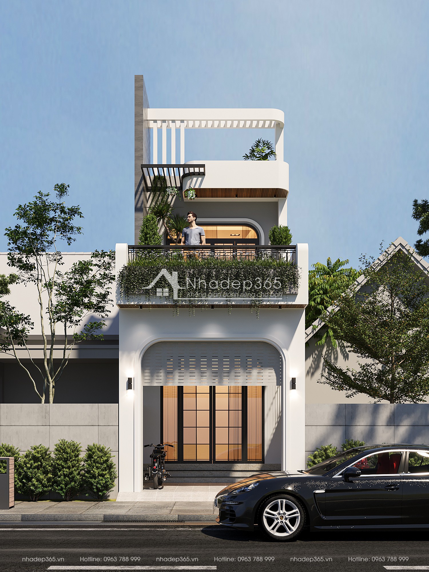 Vận dụng yếu tố xanh trong thiết kế kiến trúc giúp gắn bó con người với thiên nhiên, làm xanh hóa các công trình bê tông thép, duy trì sinh thái và tạo không gian sống thoải mái cho gia đình. Các kiến trúc sư của nhadep365.vn đã sử dụng các tài nguyên cây cối thân thiện và thích hợp với gia đình chủ đầu tư, hệ thống cây xanh được bố trí hợp lý tại các tầng và ban công của căn nhà vừa tạo ra giá trị thẩm mỹ vừa mở ra không gian mát mẻ, tràn đầy ánh sáng tự nhiên.