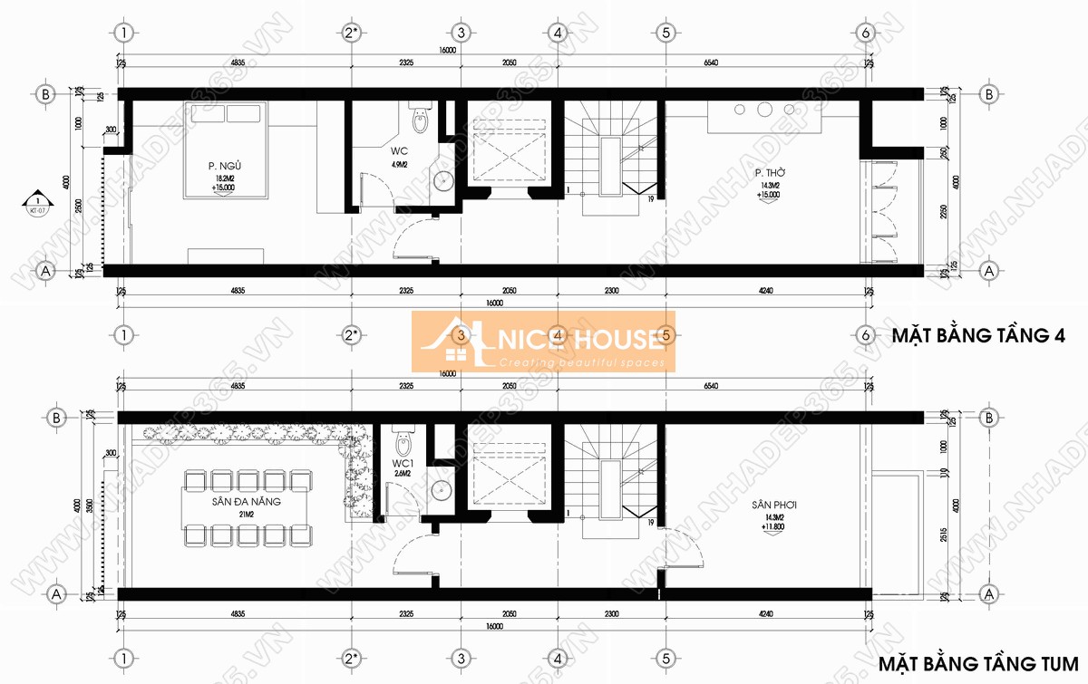 Mặt bằng tầng 4 và mặt bằng tầng tum