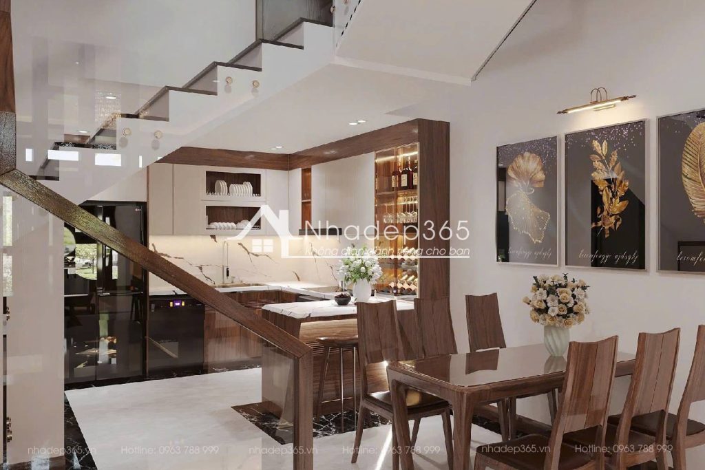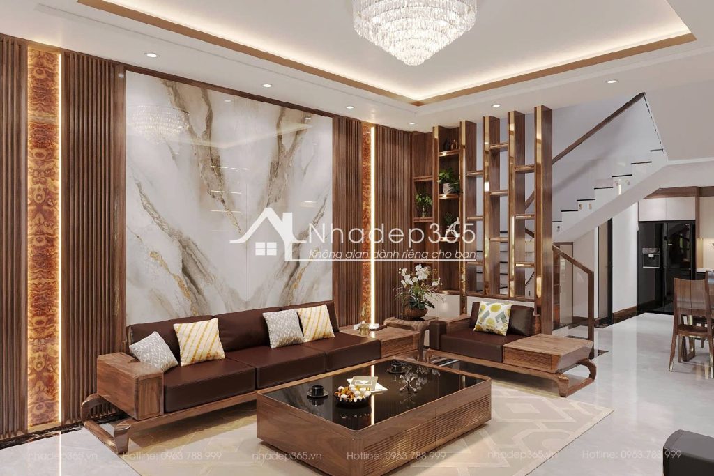 Phối cảnh nội thất nhà phong cách gỗ óc chó tại Hải Phòng