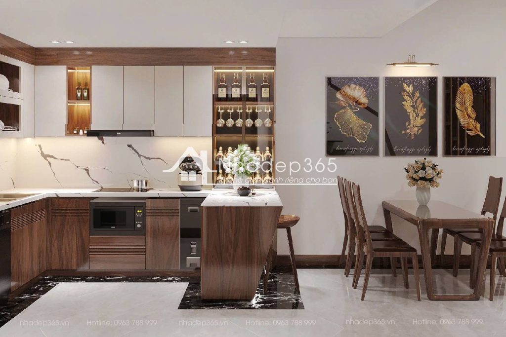 Thiết kế nội thất bếp gỗ óc chó hiện đại, tiện nghi