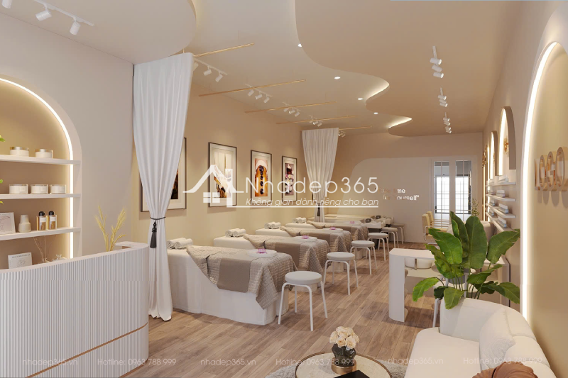 Thiết kế spa không chỉ mang đến sự thư giãn tuyệt đối mà còn tạo nên một không gian ấn tượng, thu hút khách hàng. Nhadep365 mang tới cho bạn Thiết kế nội thất spa phong cách hiện đại tại Thuỷ Nguyên – Hải Phòng 45m2 sang trọng, tinh tế thể hiện sự cá nhân hóa của mình và có điểm nhấn riêng biệt.