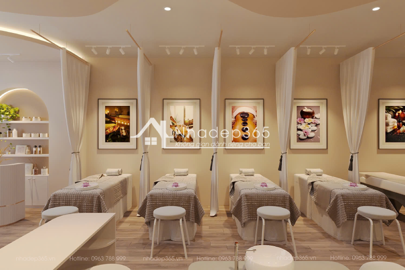 Thiết kế nội thất của spa không chỉ chú trọng đến tính năng mà còn hướng đến việc tạo ra một không gian thư giãn lý tưởng cho khách hàng. Mỗi chi tiết, từ màu sắc, vật liệu đến bố cục không gian, đều được chăm chút tỉ mỉ, mang lại trải nghiệm hoàn hảo và đáng nhớ. Với không gian được thiết kế hiện đại và tiện nghi, spa này thực sự là điểm đến lý tưởng cho những ai tìm kiếm sự thư giãn và chăm sóc bản thân.